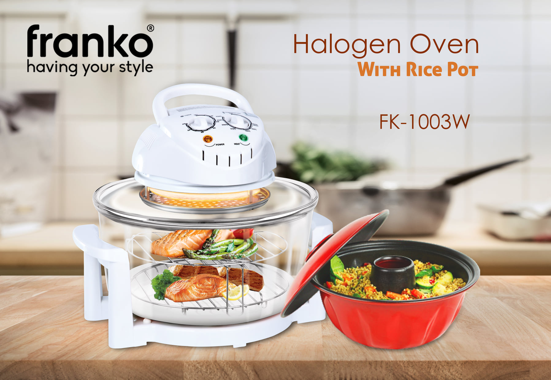 FRANKO FK-1003W არის მრავალფუნქციური ჰალოგენური აეროგრილი, რომელიც შექმნილია ჯანსაღი და გემრიელი კერძების მოსამზადებლად. მისი 1500 ვატიანი სიმძლავრე და 20 ლიტრი მოცულობა საშუალებას გაძლევთ, მარტივად მოამზადოთ საკვები მთელი ოჯახისთვის.